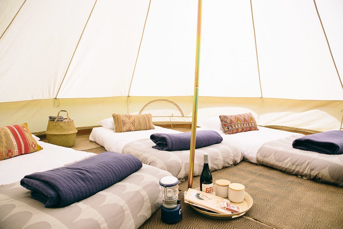 5m Bell Tent: Includes 1 x Queen AND 2 x Single Beds